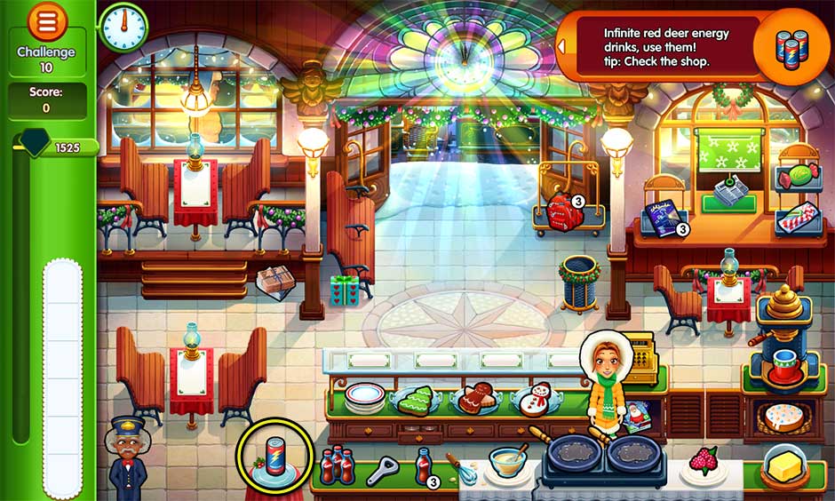 Delicious – Emily’s Christmas Carol is a time management game. The goal is to serve all customers that enter the restaurant before the day ends. The happier the customer, the higher the score!