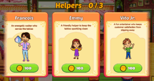 Need some help in the kitchen? You can use your hard-earned coins to hire helpers to make your workday easier. The helpers change per location, and you can use up to two helpers at a time, so choose carefully. Subscribers can use as many Helpers as they like!