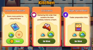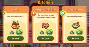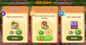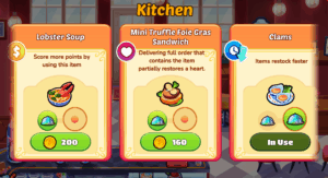 Use your hard-earned coins to purchase Kitchen Upgrades that enhance your menu offerings and boost your earnings. Kitchen Upgrades include items you serve to customers or use to cook/prepare items on your menu. Using the upgraded kitchen items can: