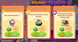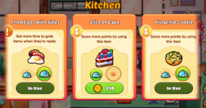For example – the first star might be worth 50 coins, the second star worth 100 coins, and the third star worth 150 coins. If you earn all 3 stars, you’ll earn 300 coins (based on this example). You can use coins to purchase Kitchen Upgrades, Interior Upgrades, Helpers, and additional Diorama decoration options.