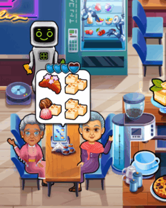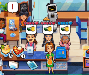 Your main task during gameplay is to serve customers. Select the item they ordered, which will be added to your inventory tray. Then, select the customer to deliver the order.